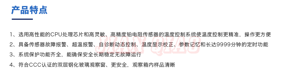 產品型號:JQ-9640 品牌:劍 喬 用途:精密高溫箱用于對電子電工、汽車摩托、航空航天橡膠、塑膠、金屬、船舶兵器、高等院校、科研單位等相關產品的零部件及材料在高溫恒溫變化的情況下,檢驗其各項性能指標。咨詢熱線:13829135130