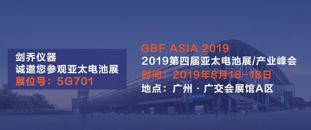 GBF.ASIA 2019第四屆亞太電池展將于2019年8月16日至18日在廣州·廣交會展館舉行。廣東劍喬試驗設(shè)備有限公司(劍喬儀器)將攜旗下最新儀器設(shè)備盛裝亮相。