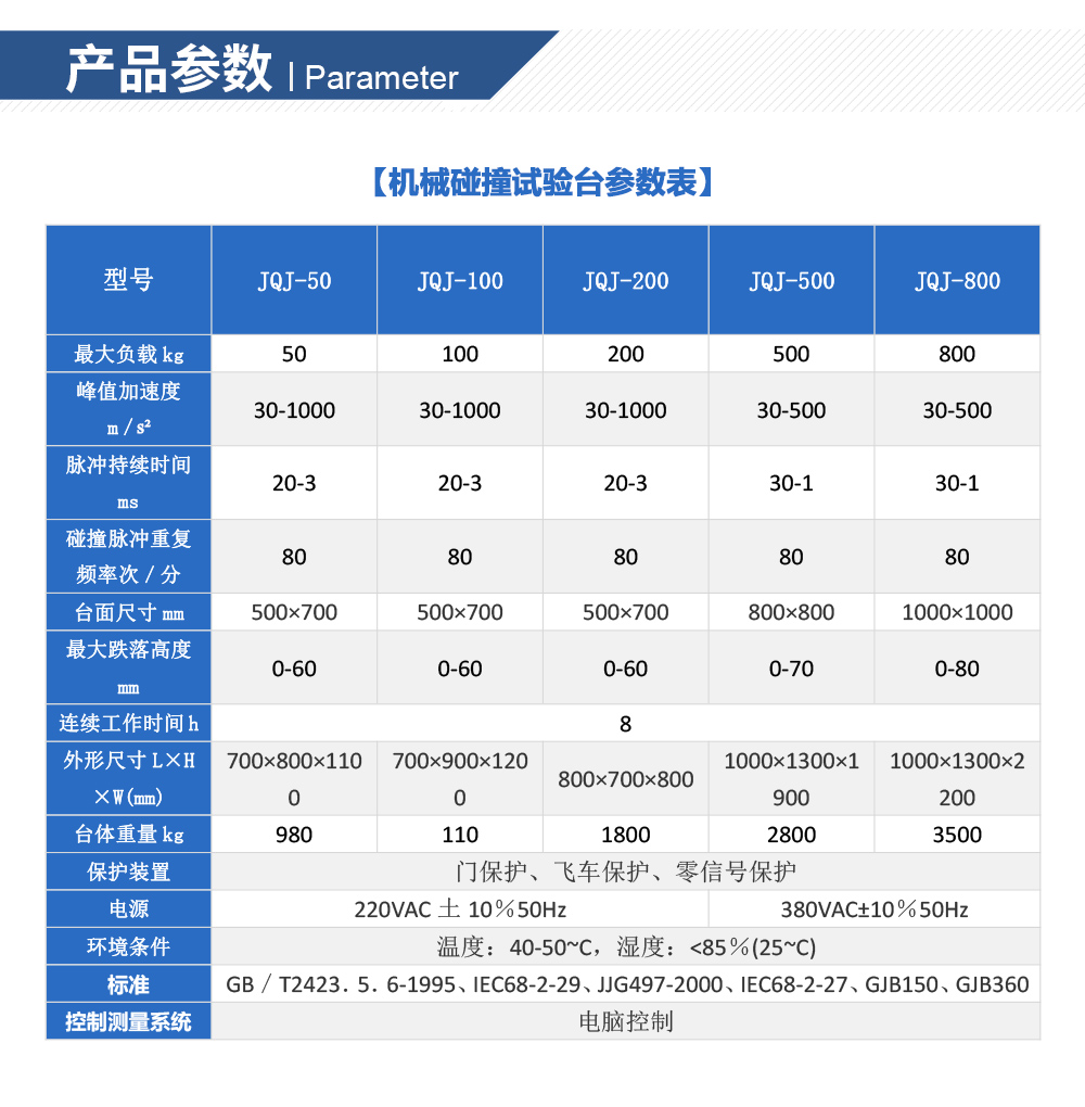 產(chǎn)品型號:JQJ-100 品牌:劍 喬 用途:機械碰撞試驗臺模擬仿真裝備及組件在使用與運輸過程中,可能遭遇的沖擊效應為主,并透過沖擊波于瞬間瞬時能量交換,分析產(chǎn)品承受外界沖擊環(huán)境之能力,試驗之目的在于了解其機咨詢熱線:13829135130